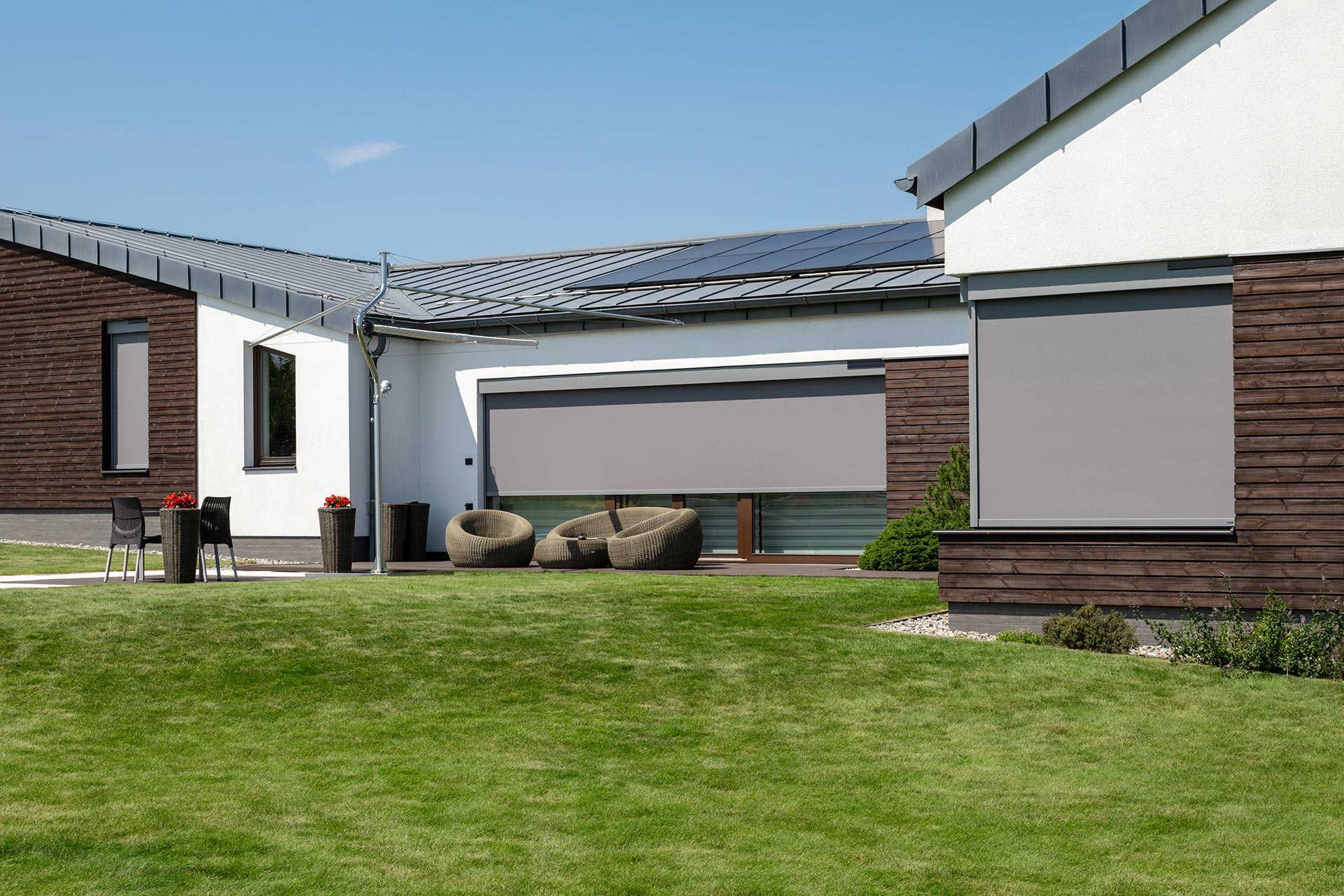Thanks to new solar-powered drives, our screens offer reliable performance without the need for a mains power connection. This is the perfect solution for installations requiring no interference with the façade and for sites without access to electricity.