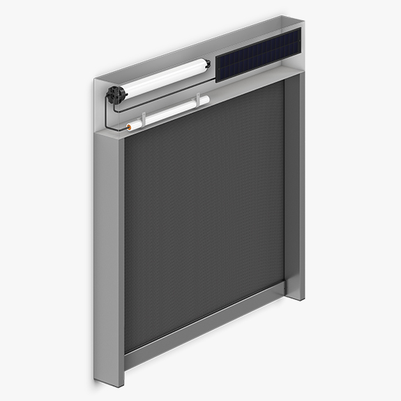 Varianta Solar Standard má fotovoltaický panel zabudovaný přímo na horním boxu látkové rolety. Přes den přeměňuje sluneční záření na elektrickou energii, která se ukládá do baterie umístěné v boxu rolety a napájí motor rolety.